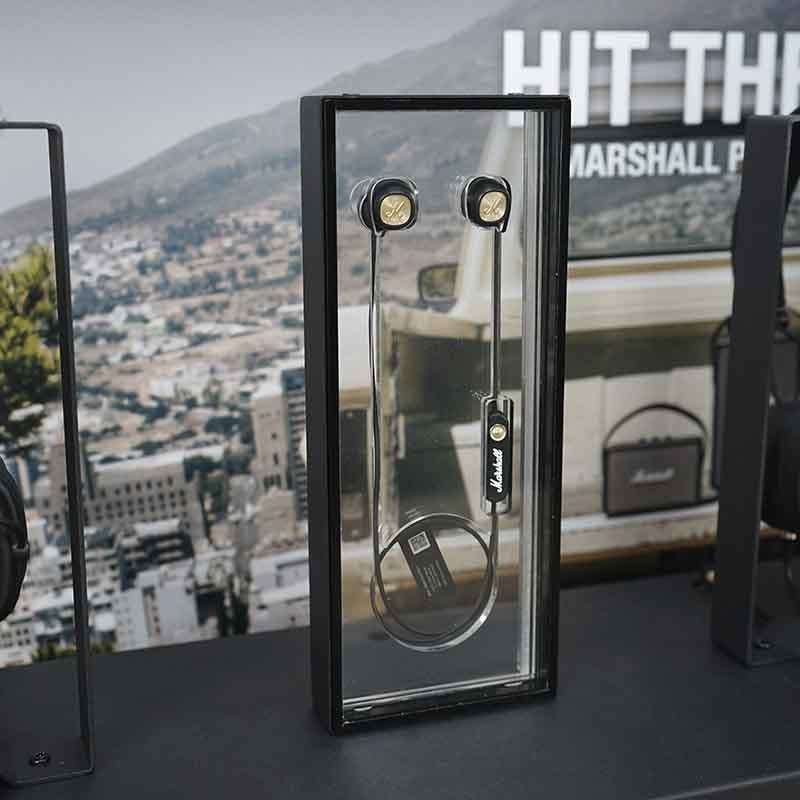 Custom Acrylic Display TWS Display Stand Design for professional audio equipment presentation and retail display.